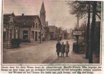 We kijken in de richting van het centrum met rechts het café/biljard de Zwaan, bakkerij, kruidenier en landbouwschuur van eerst Muller en daarna zijn schoonzoon Theo Bosch, zoals te lezen valt op het bordje ("Café Billard Th. Bosch vh Muller'). Het pand zelf is niet zichtbaar op de foto.