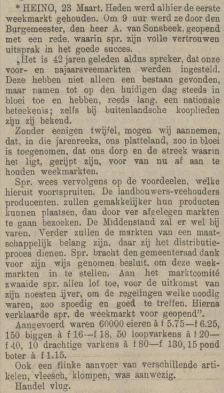Krantenartikel over de eerste weekmarkt in Heino