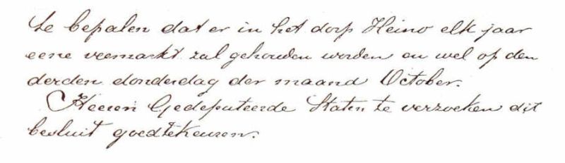 Verzoek gemeenteraad Heino veemarkt 1883