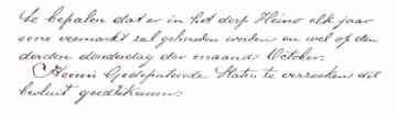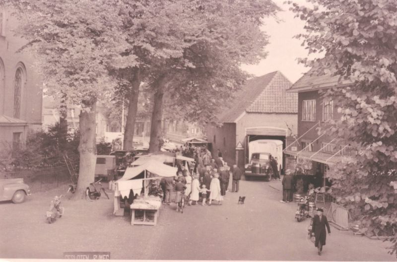 "Namens Kerkvoogden en Notabelen der Nederlandsch Hervormde Gemeente is bericht ingekomen, dat ze hun besluit omtrent het z.g. "tipje" (daar waar nu de pomp staat) voor vergroting van het marktplein slechts wenschen af te staan voor de huursom van f 25,- per jaar handhaven. Mocht de gemeente deze voorwaarden niet willen aanvaarden, dan verzoeken ze te willen zorgen, dat zand, thans reeds op het bewuste terrein aangebracht, vóór 1 April e.k. worde verwijderd en ook de vernielde heg worde hersteld. Noodgedwongen, immers vergrooting van het marktterrein is beslist noodig, wordt besloten de gestelde voorwaarden te aanvaarden".