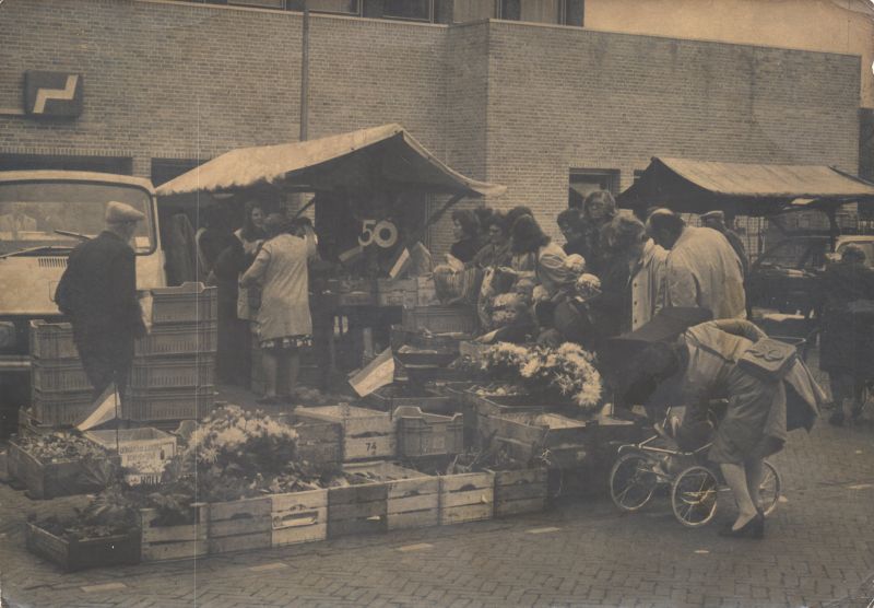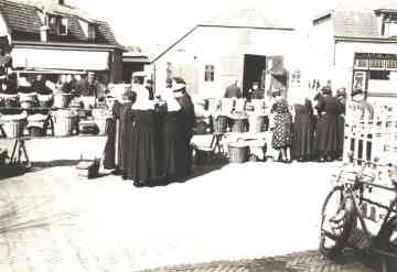 De wekelijkse warenmarkt rond 1950