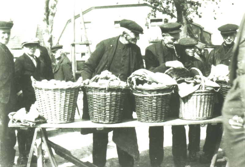 Het is rond 1930/35. Op de wekelijkse eiermarkt werden de eieren in manden meege