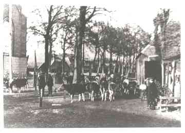 Veehandel vóór Bondscafé Hazelhorst