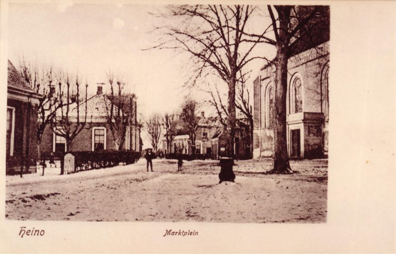 De markt van Heino is niet altijd aan de noordkant van de Nicolaaskerk geweest. Daar was rond 1900 nog een puntje groen met moestuintjes en heggen eromheen. Langs de ene kant van de punt liep de Dorpsstraat. Die was voor het tweerichtingsverkeer richting Raalte en Zwolle. Langs de andere kant liep een smal, amper verhard weggetje dat alleen voor fietsers en voetgangers was bedoeld, het Hazelhorstweggetje. Maar er was al wél een veemarkt. Waar was die dan?