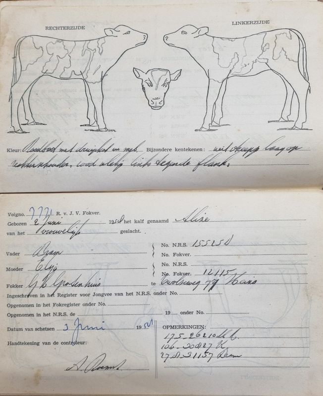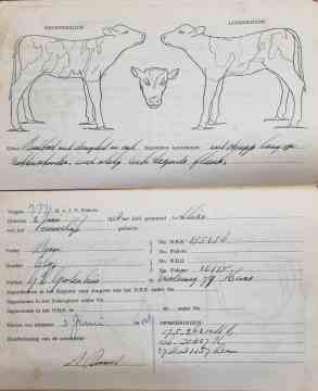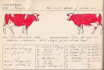 Op de schets stonden twee afbeeldingen van een rund, een keer van de linker- en een keer van de rechterkant. In die afbeeldingen moest de schetser de vlekken tekenen. Verder moest hij opschrijven welke kleur het rund had, bijvoorbeeld ZB (zwartbont) of MRIJ, dat stond voor Maas, Rijn en IJssel en dat stond weer voor roodbont. Daarbij kwamen dan nog gegevens zoals ras, naam , geboortedatum, ouders, eigenaar en wat verder van belang was.