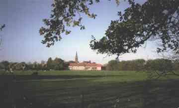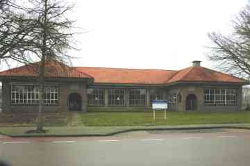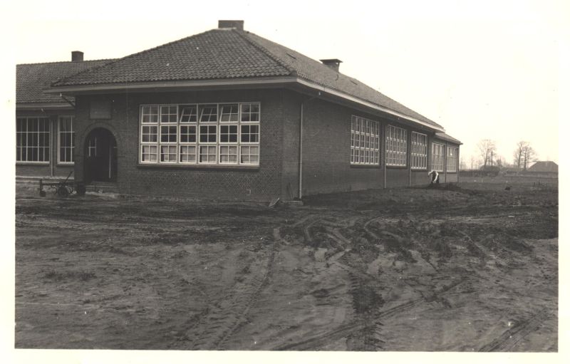 Op de achtergrond is de woning van het schoolhoofd zichtbaar.