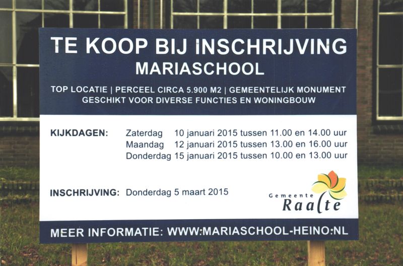 De ‘oude’ Mariaschool werd in 2015 door de gemeente Raalte verkocht. Het pand werd gerestaureerd en geschikt gemaakt voor bewoning. Op de speelplaats achter de school kwamen vier woningen en op de plaats waar twee lokalen van de lange vleugel werden afgebroken, kwam een vrijstaande woning.