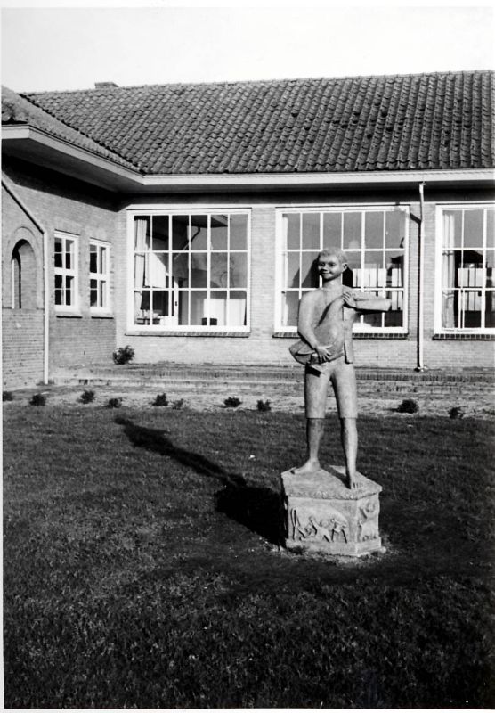 Het beeldje van Gelukkige Hans bij de Mariaschool 1960