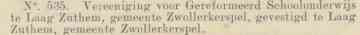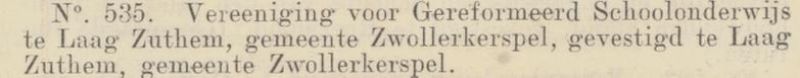 In Laag Zuthem werd op 5 januari 1920 zonder al teveel ophef de gereformeerde School met den Bijbel in gebruik genomen. Het was hoog tijd voor zo’n school, omdat de regering van plan was het bijzonder en het openbaar onderwijs gelijk te schakelen. Bovendien paste een school met deze signatuur goed bij de grotendeels gereformeerde omgeving van Laag Zuthem.